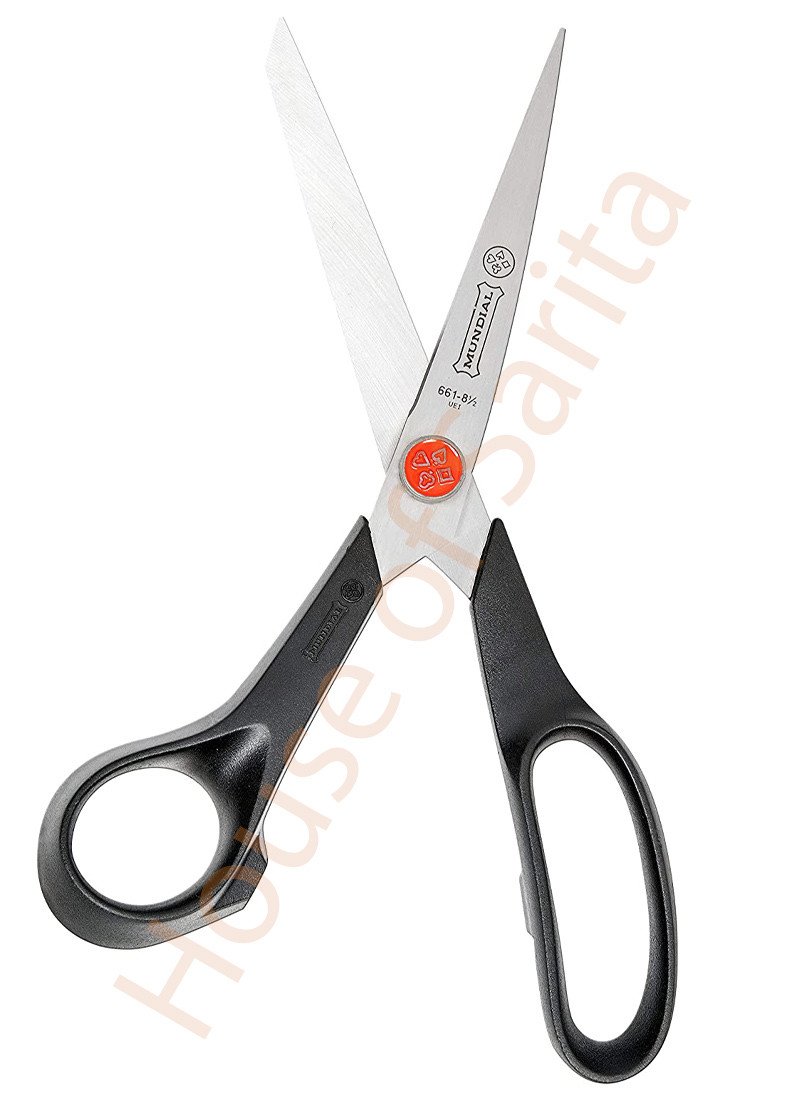 Mundial 8½" Left-Handed Multi-Use Dressmaker Shears – Knife Edge, Black Handle, Single Blister Pack