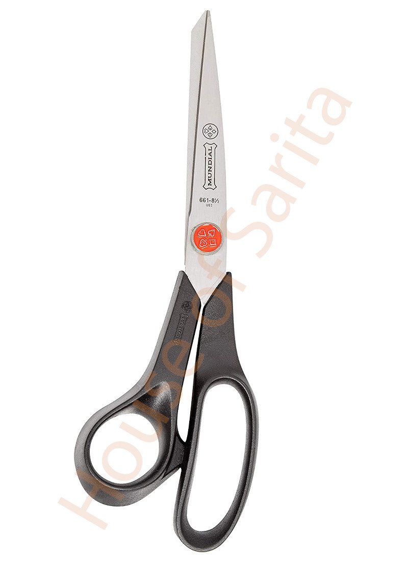 Mundial 8½" Left-Handed Multi-Use Dressmaker Shears – Knife Edge, Black Handle, Single Blister Pack